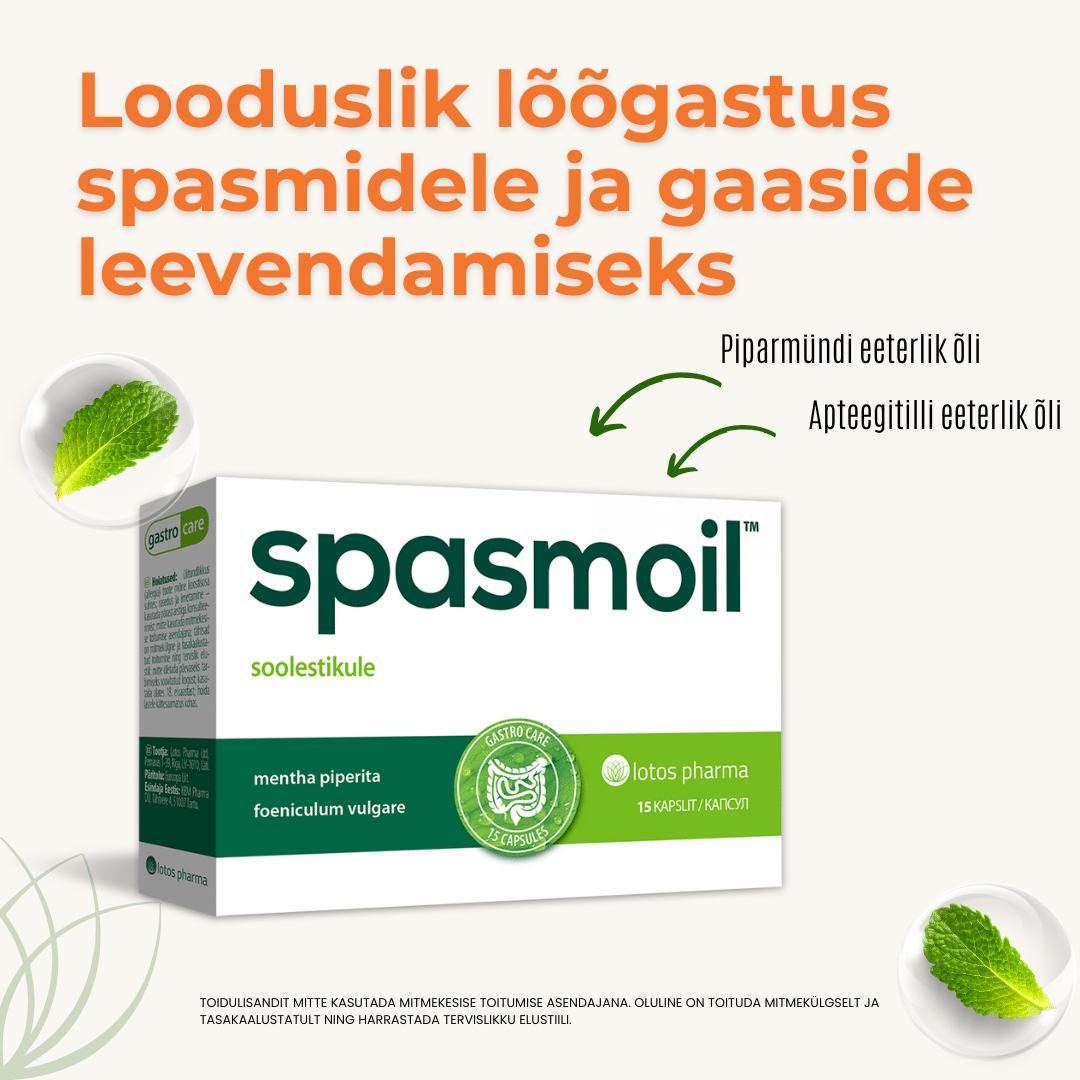 Lisaks ülaltoodud soovitustele võib abi olla ka looduslikust toidulisandist Spasmoil, mis sisaldab seedetrakti lõõgastavaid ja gaase vähendavaid piparmündi- ja apteegitilli eeterlikke õlisid. Piparmünt leevendab kõhupuhitust ja iiveldust ning soodustab sooletegevust, samas kui apteegitill toetab seedimist ja vähendab kõhukinnisust. Spasmoili kapsleid saab kasutada nii ennetavalt enne söömist kui ka siis, kui kõhuhädad on juba tekkinud.