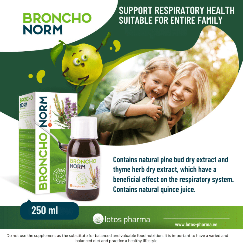 In case of cough, the natural Bronchonorm balsam will be a good helper for the respiratory tract. Bronchonorm contains pine and thyme herb extracts which are beneficial for the respiratory system – help to calm and soften the respiratory system and also help to make the breathing easier.